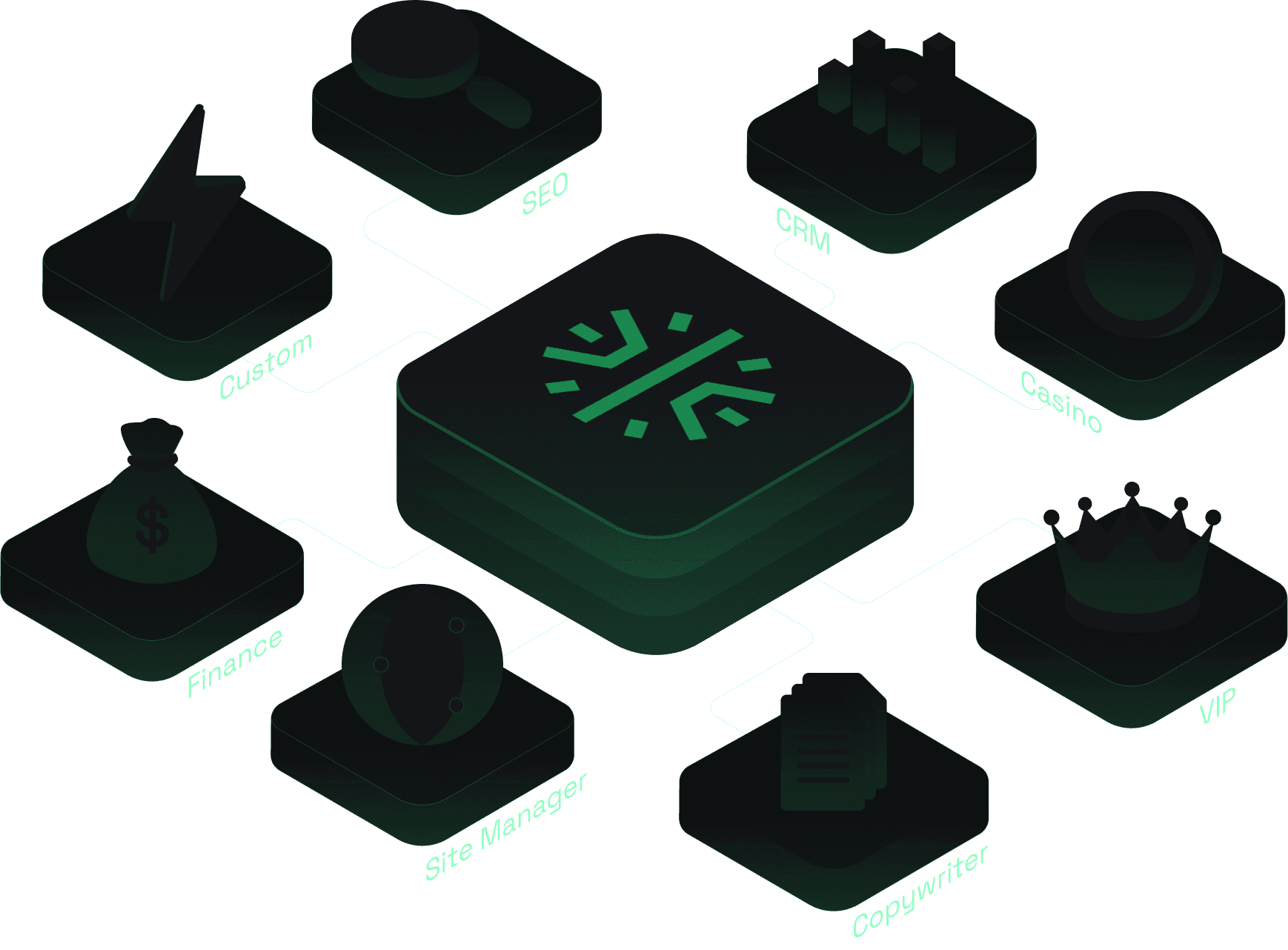 Not generic chatbots. Specialized agents for SEO, CRM, casino ops, VIP management, copywriting, and more — each trained on iGaming operations. Plus a Chief of Staff that orchestrates them all.